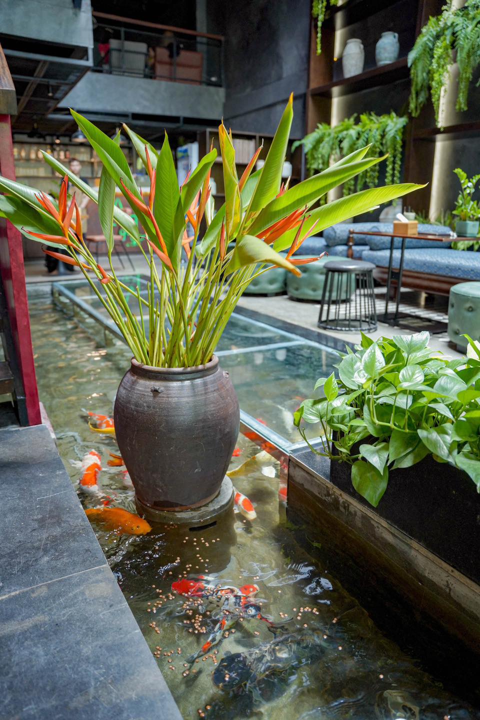 ✨Không gian trong nhà lẫn ngoài trời đều được phủ một sắc xanh êm dịu tươi mát hệt như một khu vườn mộng mơ: có cây, có hoa, có cá, và có bạn đến chơi.