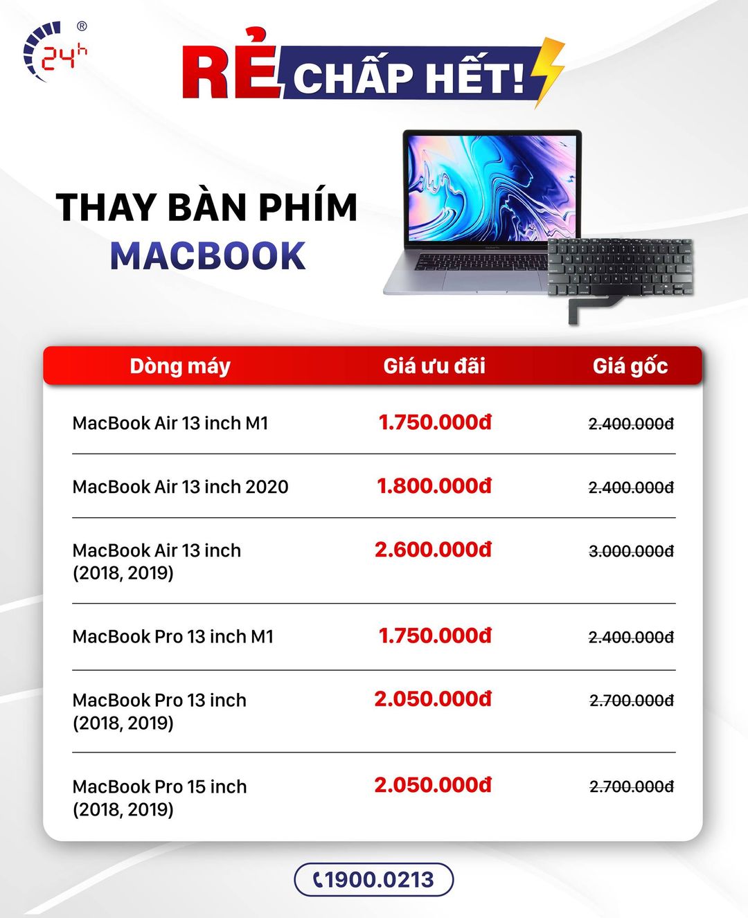 >>>❗️RẺ CHẤP HẾT❗️Giảm đến 𝟑𝟎% chi phí thay bàn phím MacBook, khách yêu chỉ cần chốt lịch qua 1900.0213. 😍