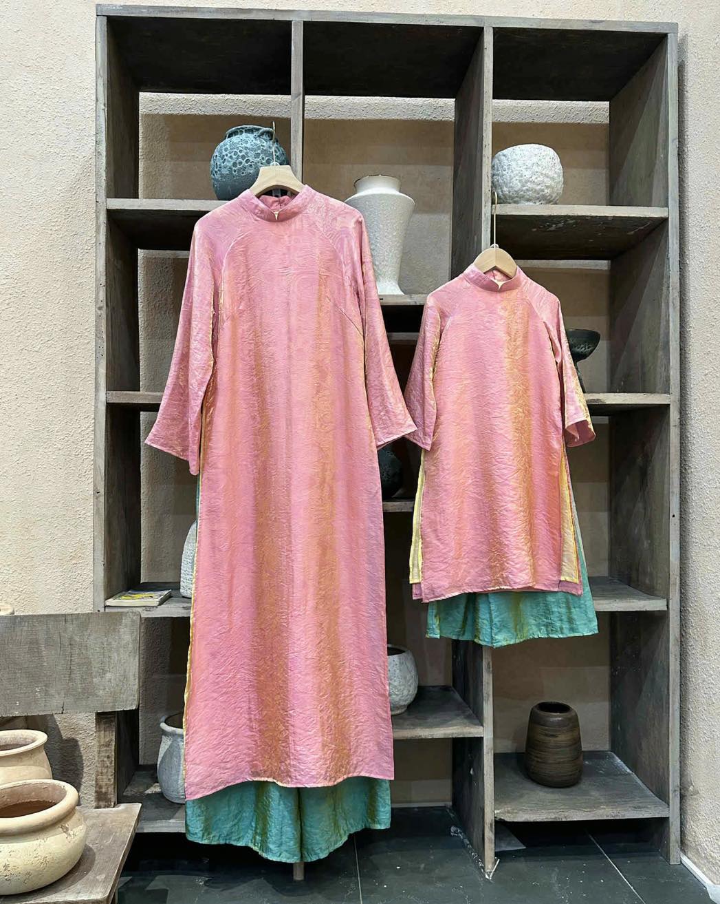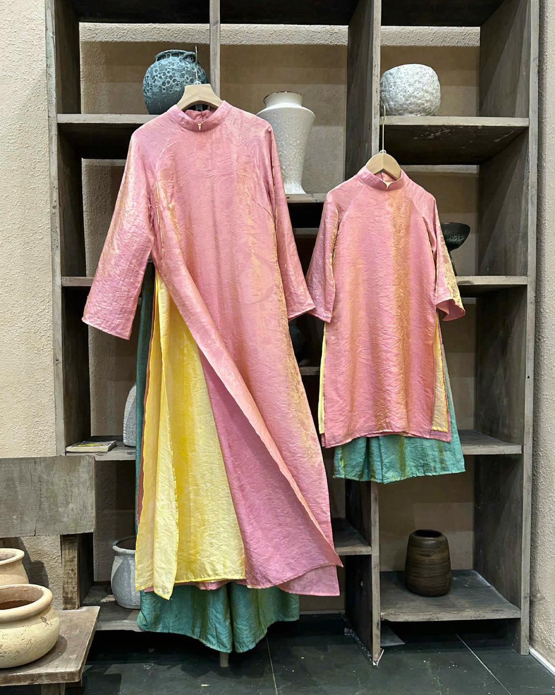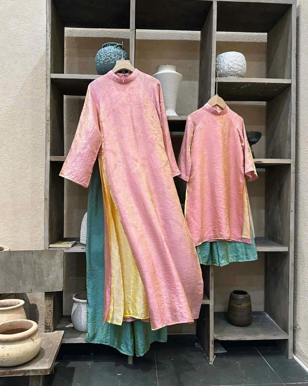 Áo dài tơ 4 tà giá ngoài thị trường cũng trên 1 triệu. Nay cả mẹ và bé giá tiền trămmmm thì phải chốt luôn ạaaaa