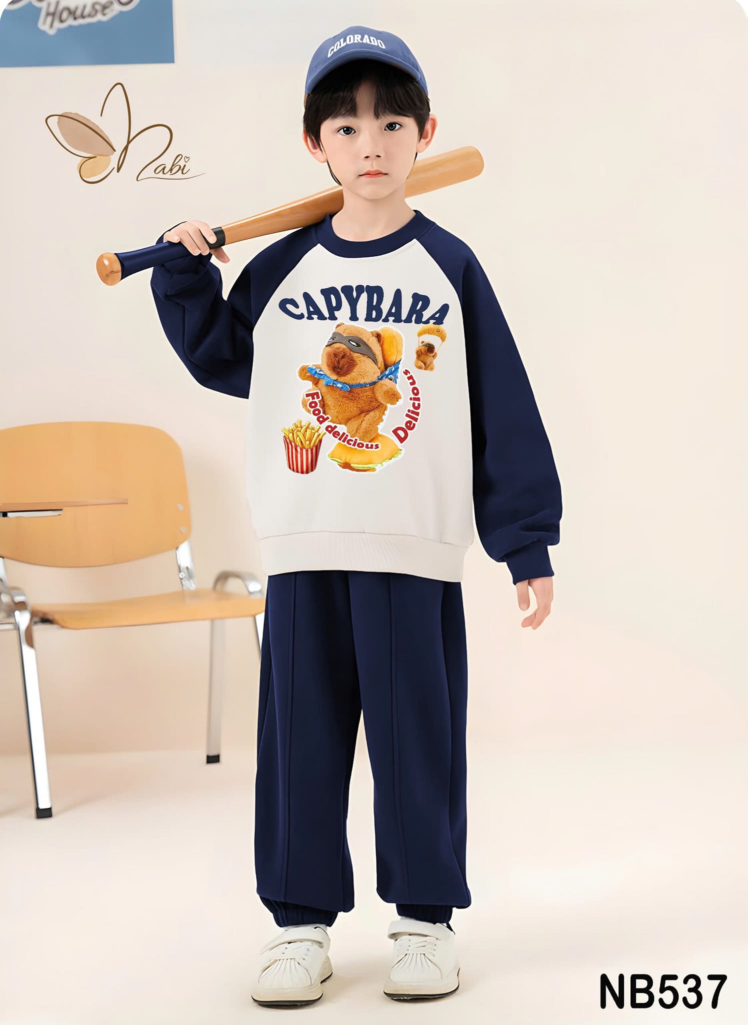 Full bộ nỉ hai da gap tay phối đẹp xuất sắc, hình in CAPPYBARA MCdonald’s không điểm chê