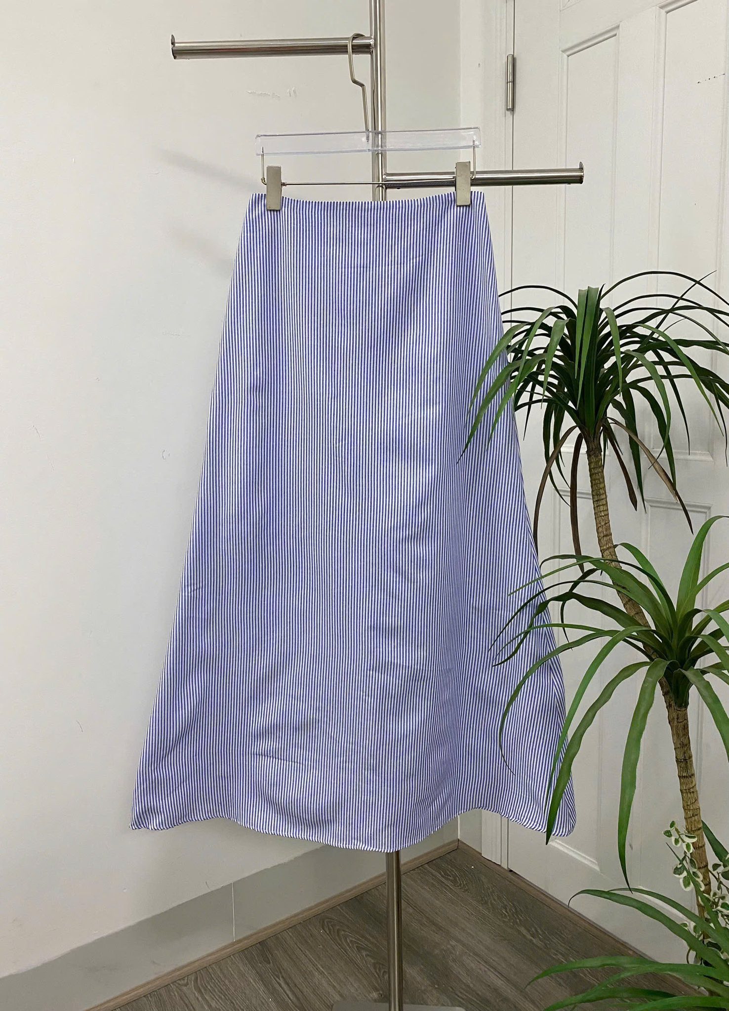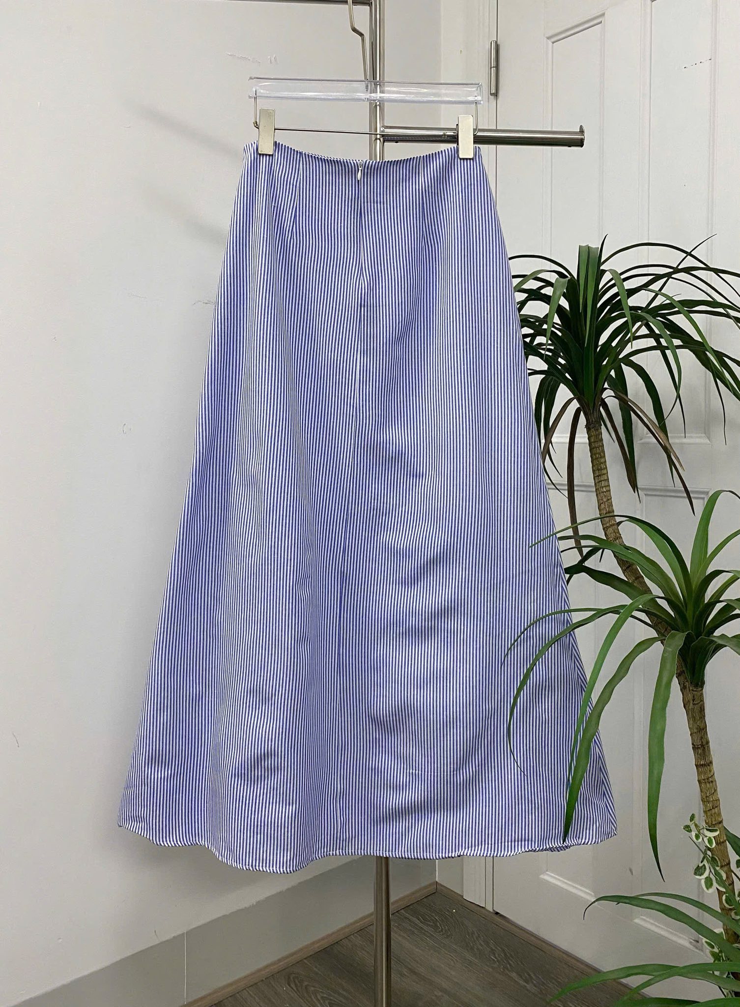 Chân váy sọc xanh dáng A nhẹ nhàng, chất vải mát mịn dễ chịu, cực kỳ dễ phối đồ. Lên outfit vừa thanh lịch vừa trẻ trung, mặc đi làm, đi học hay dạo phố đều hợp nha!