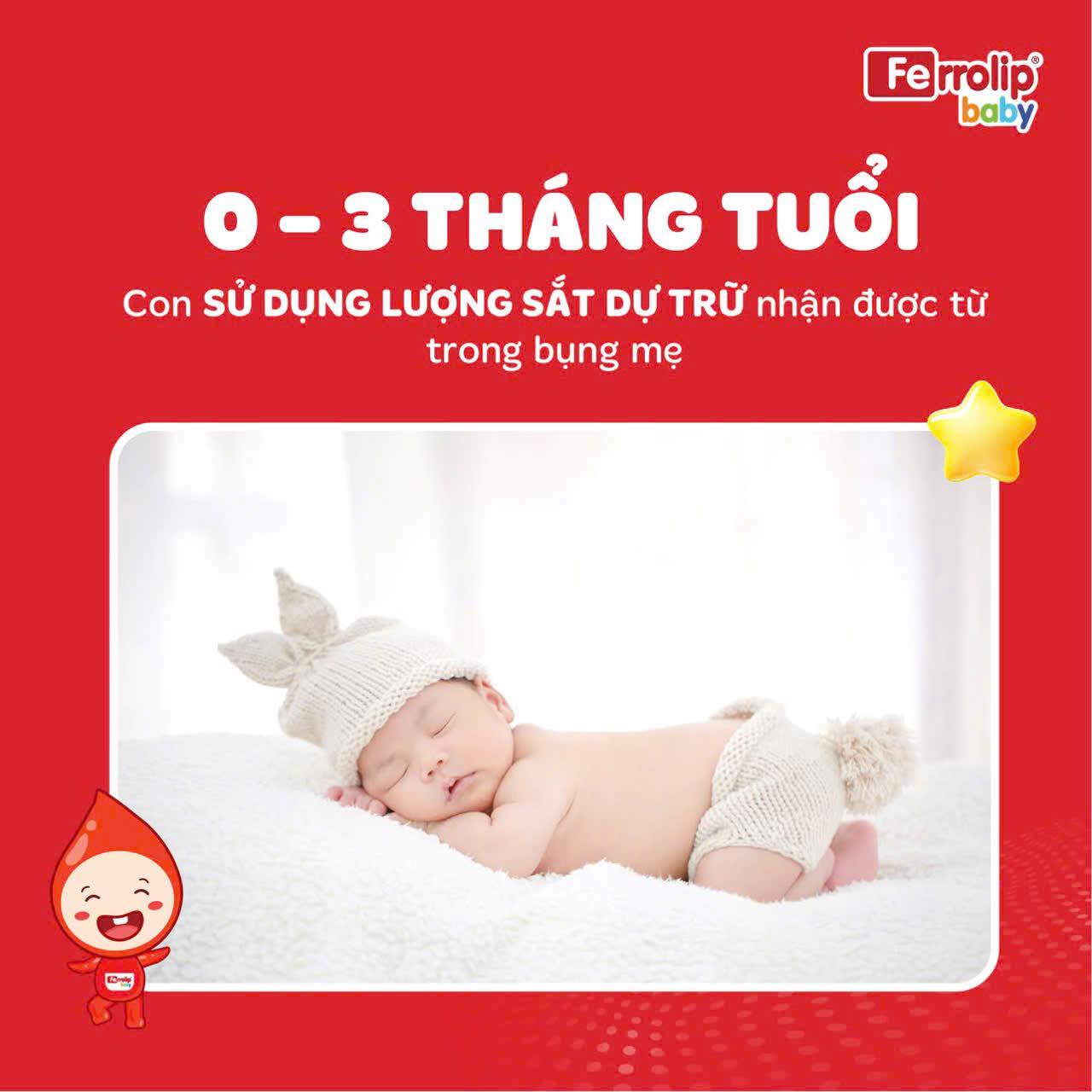 📌 0 – 3 tháng tuổi: con sử dụng lượng sắt dự trữ đã nhận được từ trong bụng mẹ