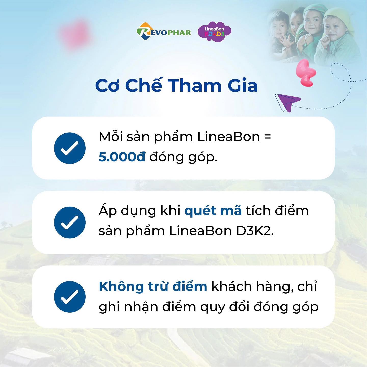 Từ 25/09 – 15/10/2025, mỗi sản phẩm LineaBon ba mẹ mua sẽ đóng góp 5.000đ vào Quỹ xây dựng trường mầm non nội trú cho 180 em nhỏ tại Sơn La.