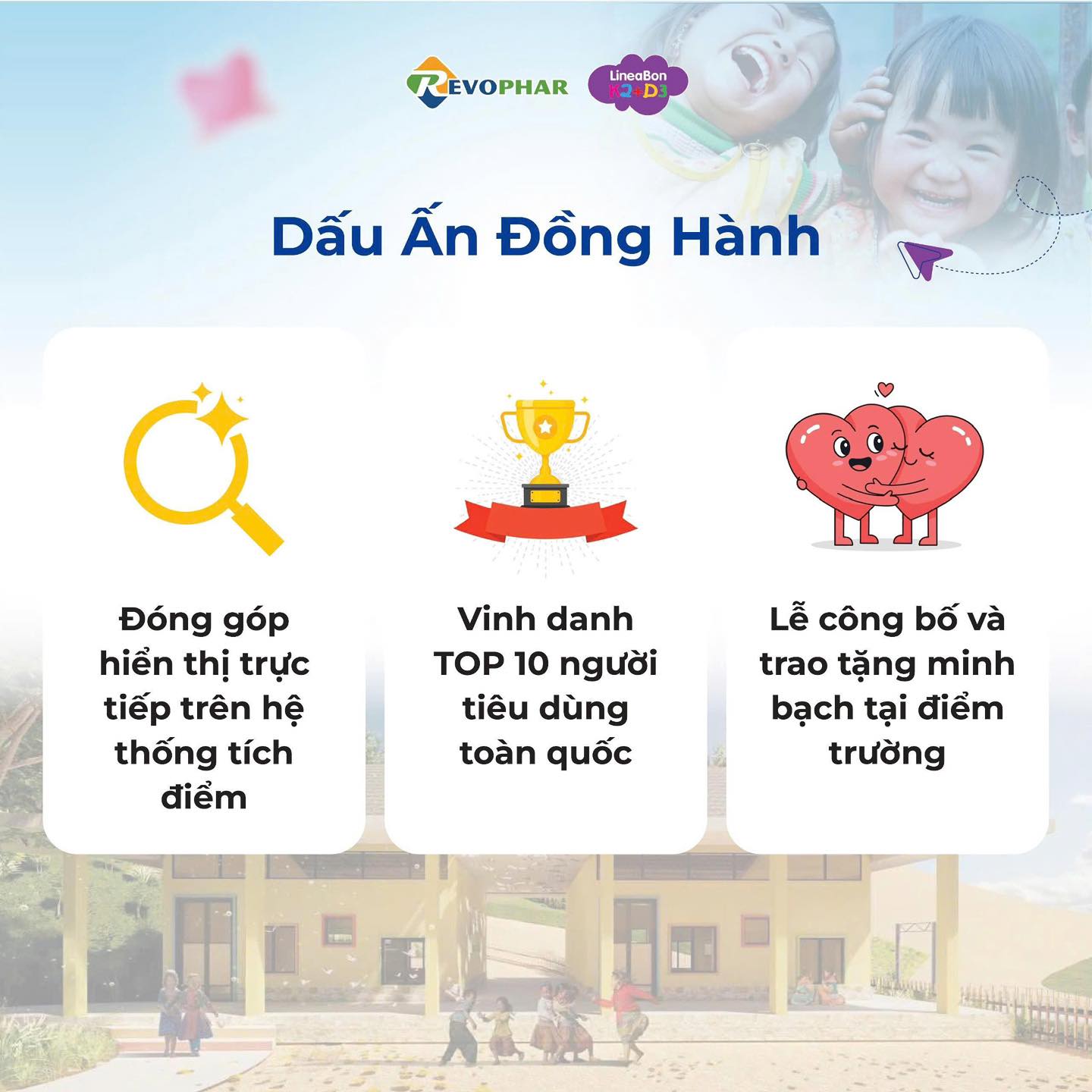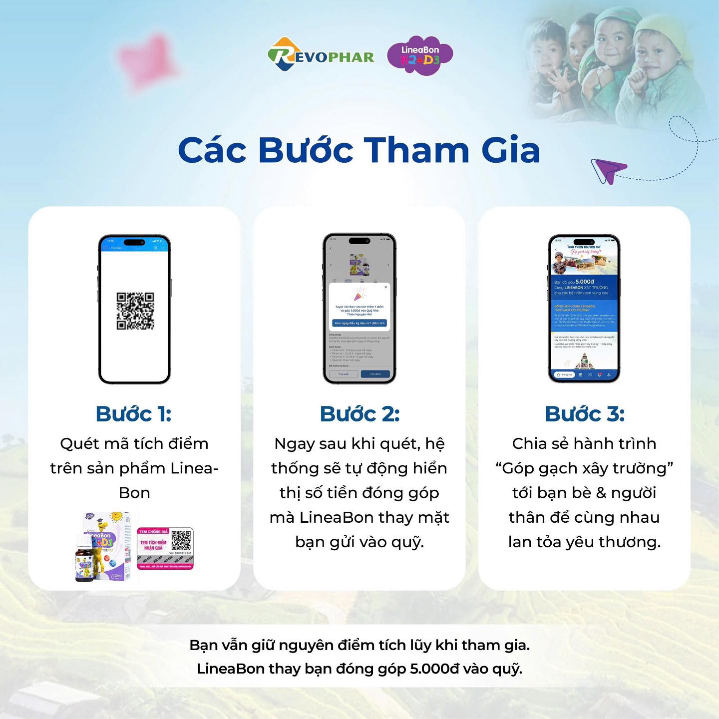 👉 Cùng LineaBon góp gạch xây lớp học bằng cách tích điểm trên app Revo Reward ba mẹ nhé.