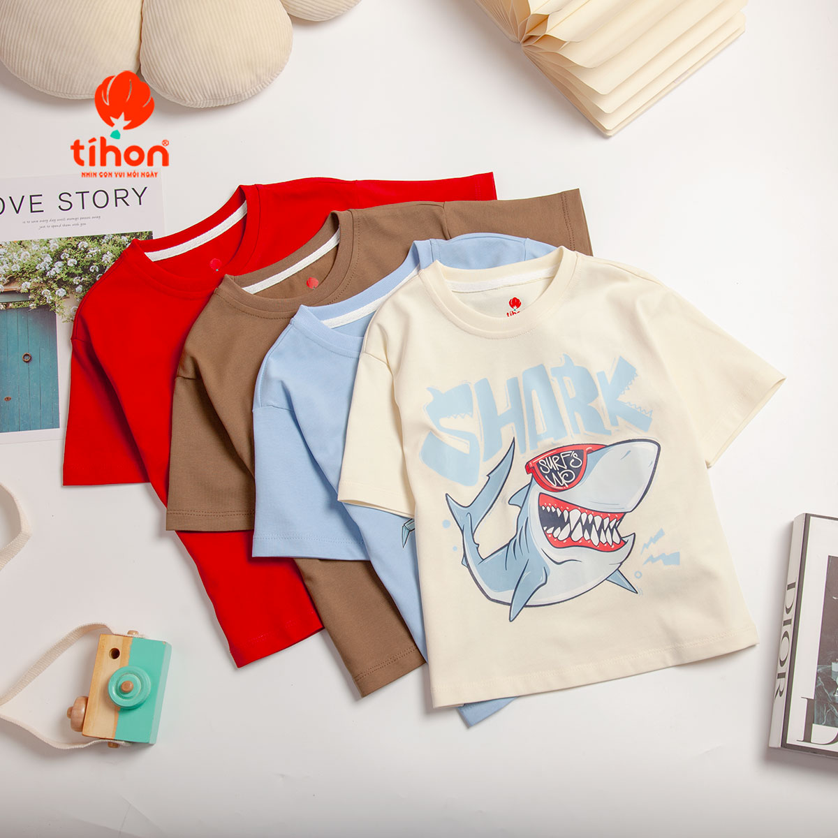 Không chỉ là những chiếc áo thun đơn thuần, đây còn là những tác phẩm nghệ thuật đầy màu sắc, khơi gợi trí tưởng tượng bay bổng của các bé. Chất liệu mềm mại , thiết kế năng động, đảm bảo bé yêu sẽ thoải mái vui chơi cả ngày dài.