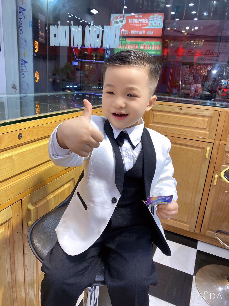 Feedback set vest trắng cổ đen cho soái ca nhí đây ạ