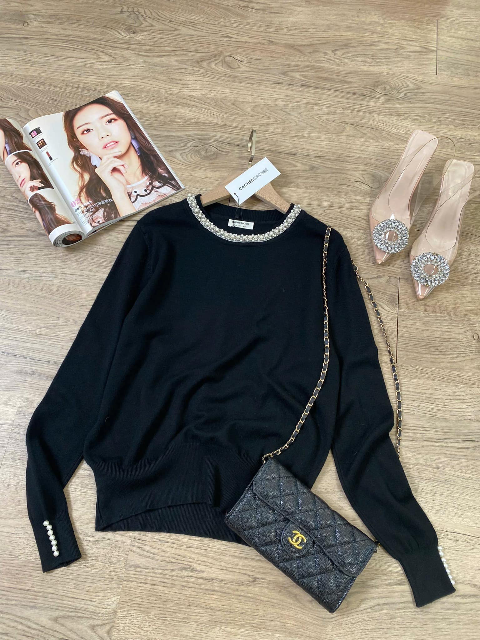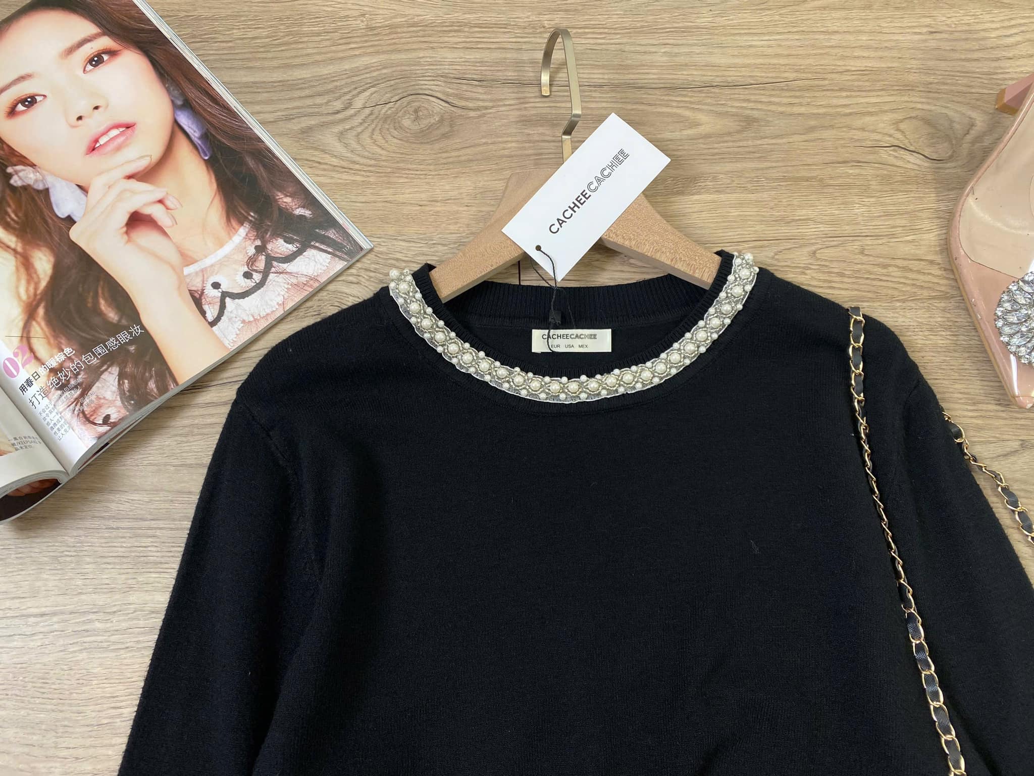 Áo len Cache phụ kiện cổ đính xịn xò sang chảnh – Vào mùa k thể thiếu những em áo này nàng ơi!