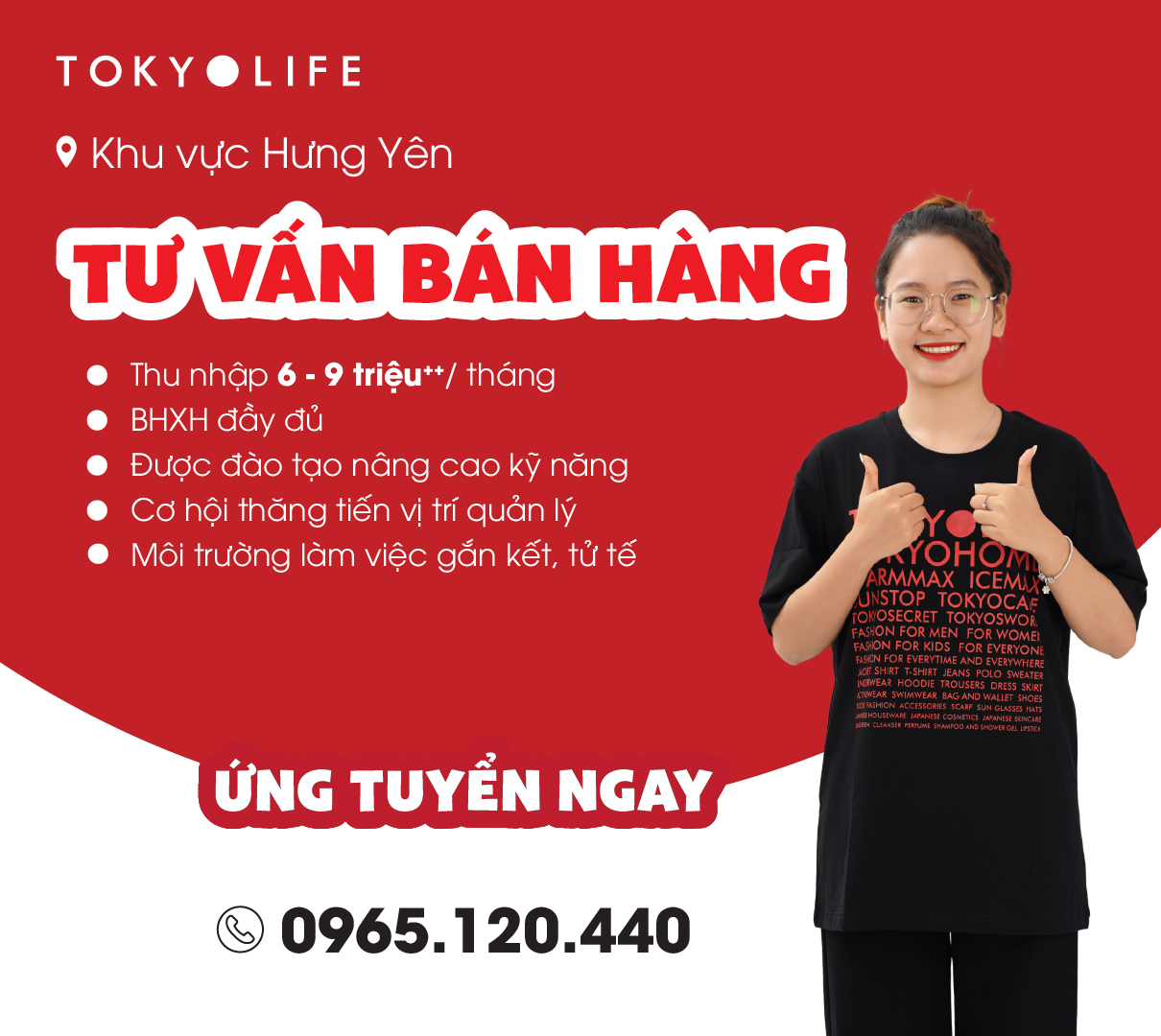 Đã online thì bạn đừng ngại tương tác vì bài viết này dành cho cơ hội việc làm siêu khủng!!! TokyoLife tìm kiếm ứng viên TƯ VẤN BÁN HÀNG khu vực HƯNG YÊN