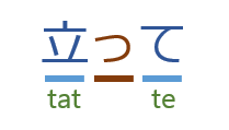 Chữ 立って 「たって」(hãy đứng) ta sẽ phát âm chậm, tách rời: tat/(ngắt)/tê rồi sẽ từ từ nhanh lên. Ngữ điệu ở đây chữ た phải phát âm thấp hơn って nhé.