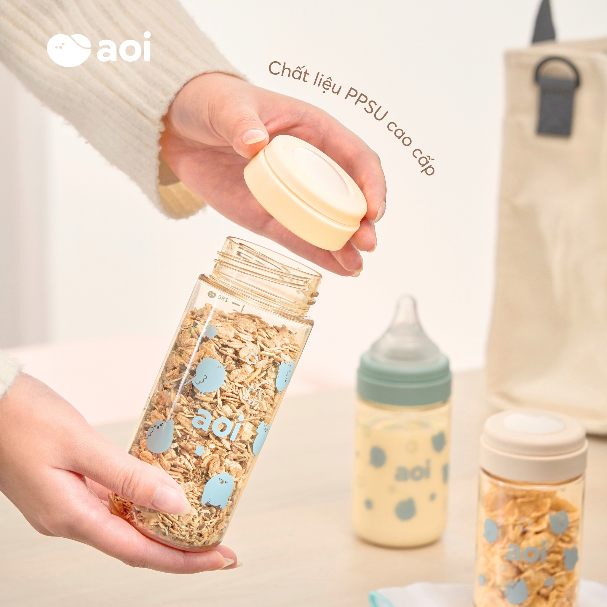 Không chỉ là bình sữa, AOI còn là người bạn đồng hành đa năng giúp mẹ chăm con thật nhẹ nhàng.