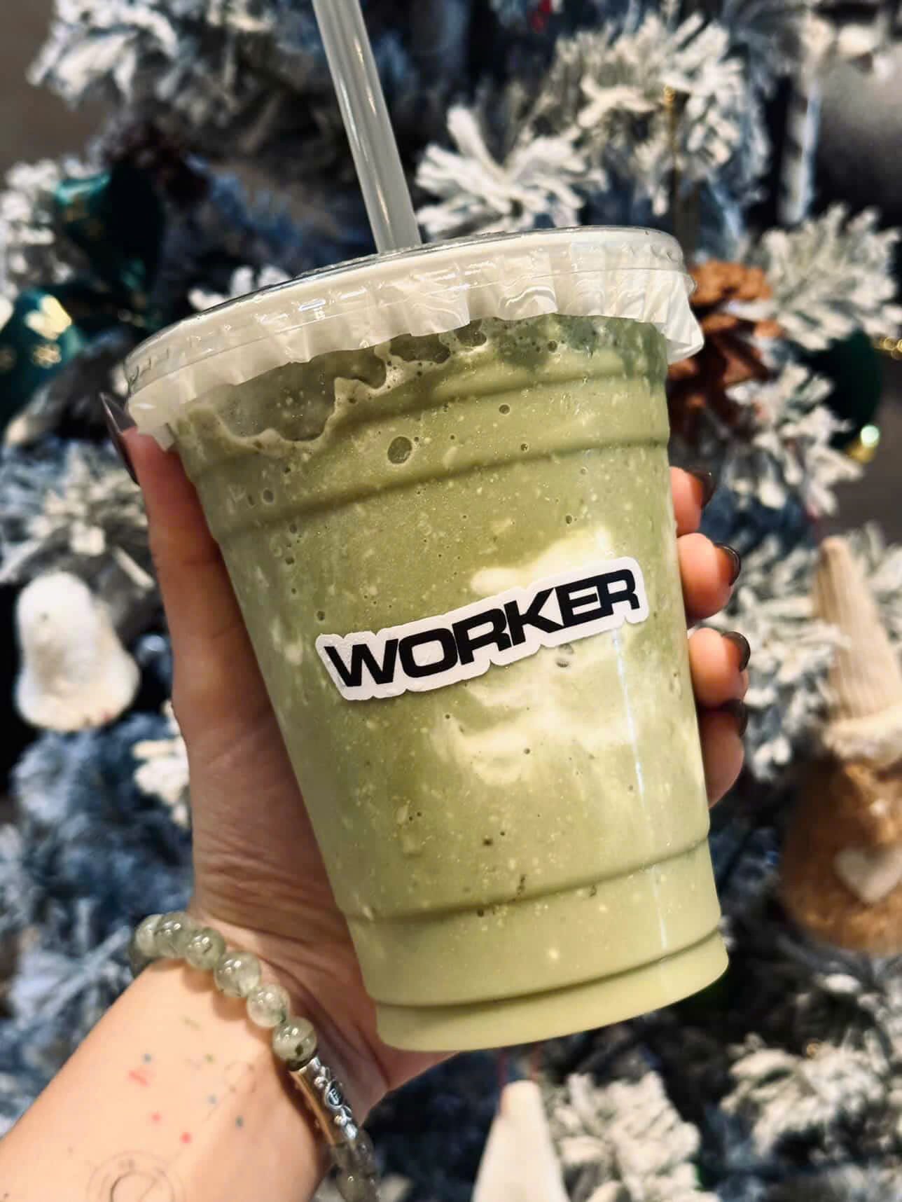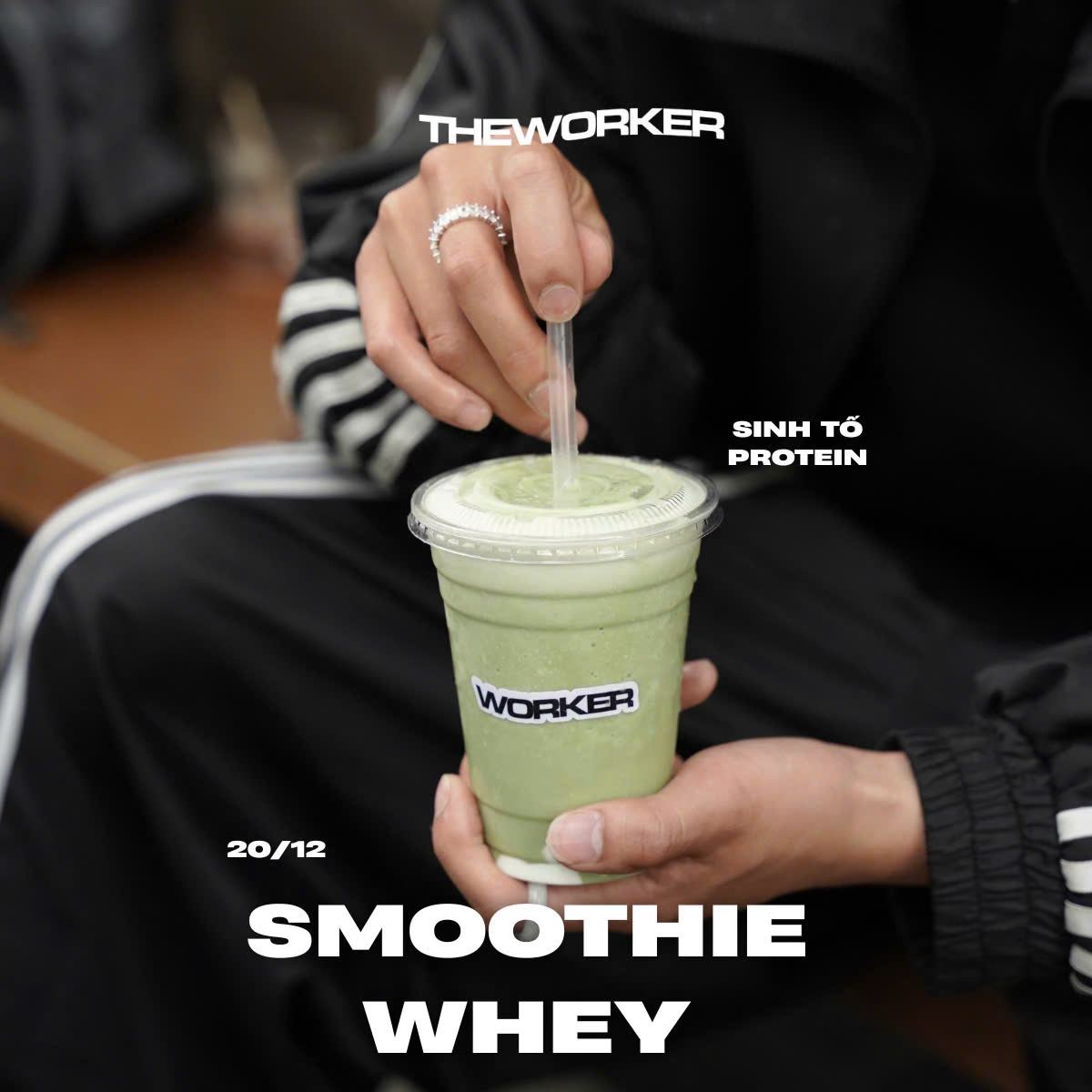 Tem dán ly giá rẻ mà sản phẩm chất lượng cao từ The Worker – Whey Smoothie & Matcha.