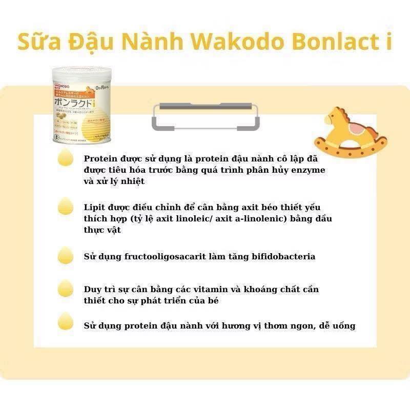 🔹Sữa Wakado dành cho các bé không dung nạp đạm sữa bò, Lactose, Wakodo bonlact đã sử đụng đạm sữa đậu nành tinh luyện giúp bé khỏe hơn, không còn dấu hiệu dị ứng hay rối loạn tiêu hóa.