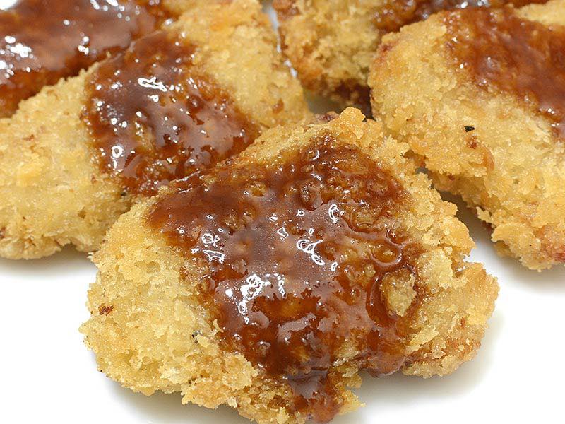 Những miếng thịt heo đông lạnh nhỏ xinh này được làm từ thịt vai heo tẩm bột chiên giòn. Chúng có kết cấu giòn tan và độ mềm, dai cân bằng tuyệt vời.