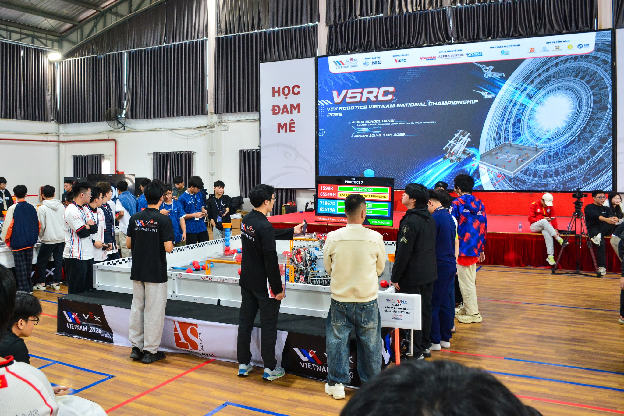 Vào ngày 11 tháng 1 vừa qua, tại Alpha School Hoài Đức, vòng chung kết Giải vô địch quốc gia Việt Nam Vex Robotics 2026, hạng mục VEX V5 đã diễn ra cùng với sự góp mặt của rất nhiều đội chơi đến từ những đơn vị khác nhau, trong đó có đội VEX V5 24751A của CLB GreenAms Robotics Team.