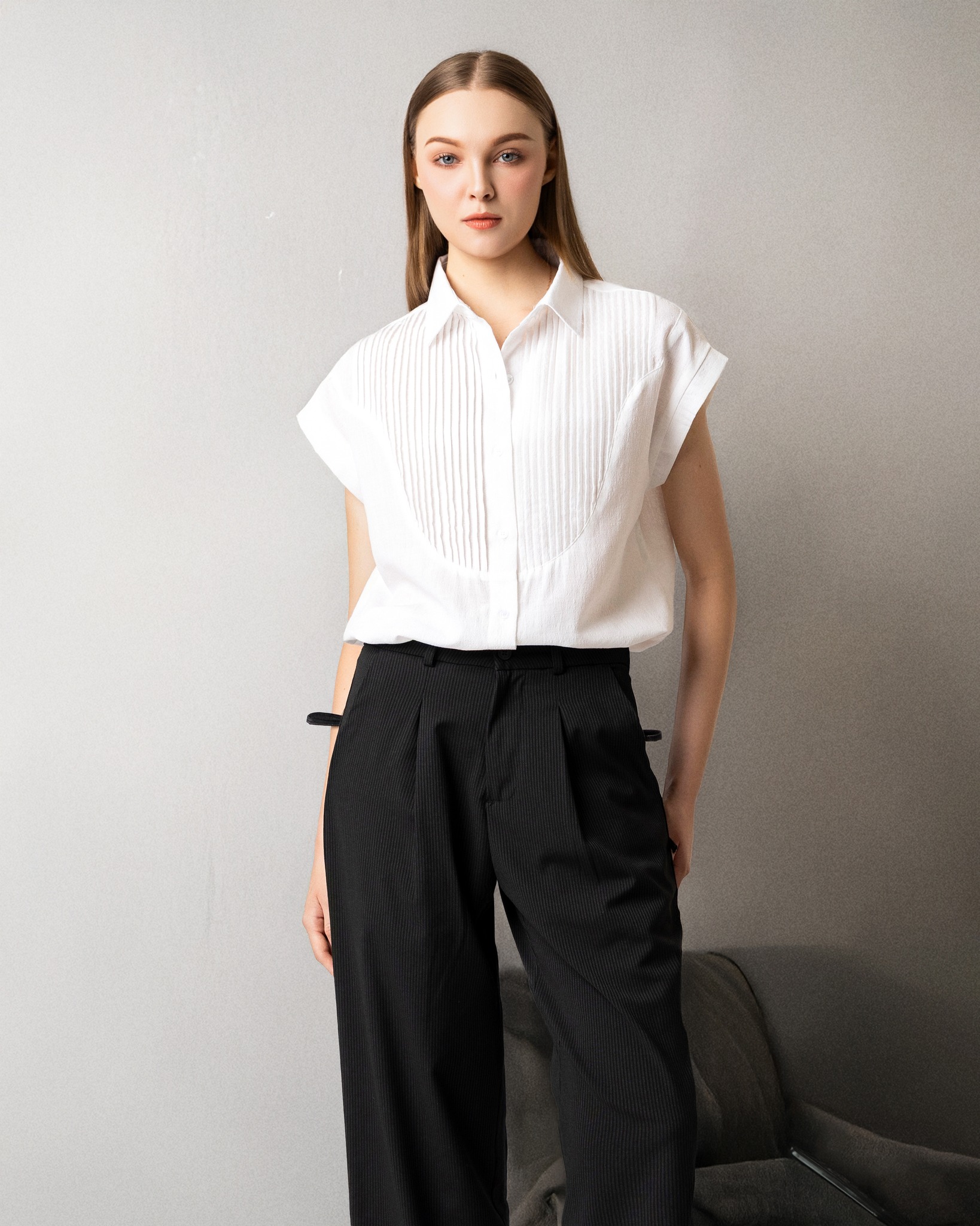 Nhẹ nhàng nhưng đầy cuốn hút. Áo sơ mi kiểu từ PT2000 mang tinh thần nữ tính hiện đại, với phom dáng mềm mại, đường cắt tinh giản và chất liệu thoáng nhẹ, chuyển động nhẹ nhàng theo từng bước đi thoải mái, tự do và đầy tinh tế.