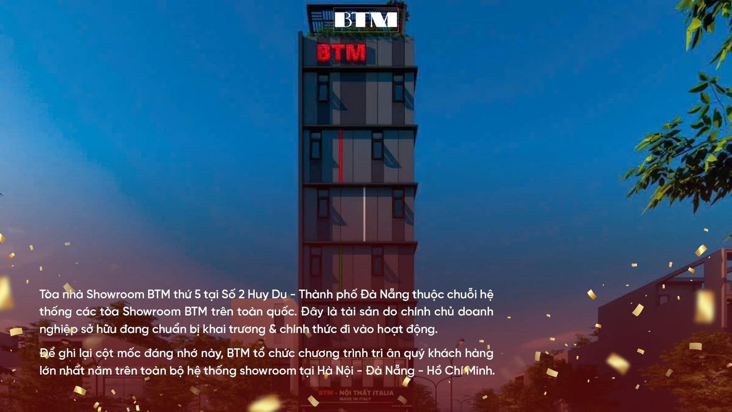 🌎𝐒𝐡𝐨𝐰𝐫𝐨𝐨𝐦 𝐁𝐓𝐌 𝐭𝐡ứ 𝟓 𝐭ạ𝐢 𝐒ố 𝟐 𝐇𝐮𝐲 𝐃𝐮, 𝐓𝐏. Đà 𝐍ẵ𝐧𝐠 – Là tài sản do chính chủ doanh nghiệp sở hữu, đánh dấu cột mốc phát triển mới trong hệ thống showroom BTM trên toàn quốc.