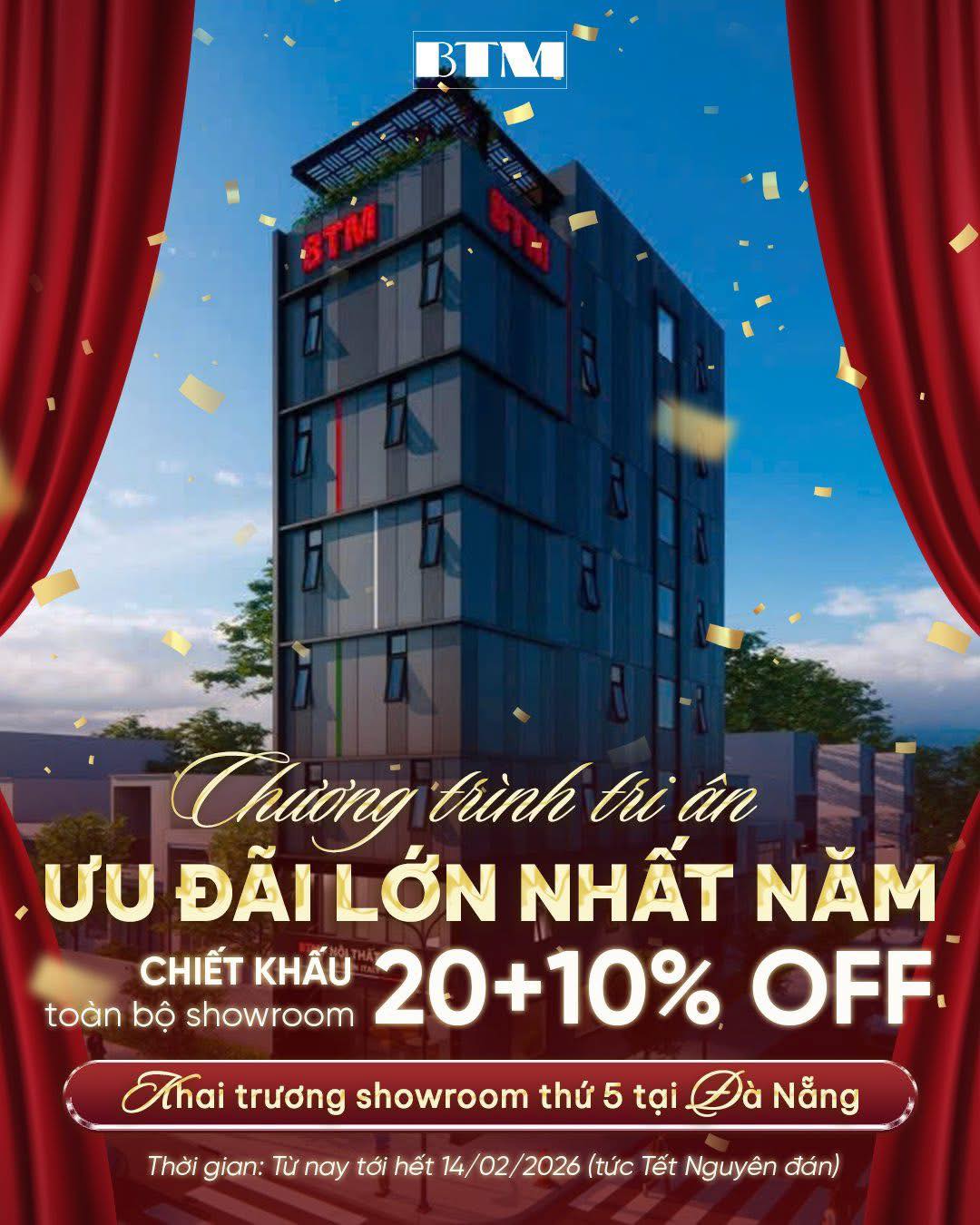 Đón Tết 2026, mừng khai trương showroom BTM thứ 5, Nội Thất BTM mang đến chương trình tri ân với ưu đãi lớn nhất năm.