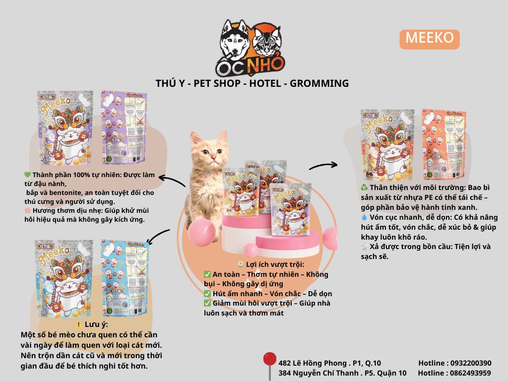 🌱 CÁT ĐẬU NÀNH MANKEl NEKO MEKKO – KHỬ MÙI SIÊU TỐT, AN TOÀN CHO MÈO tại PHÒNG KHÁM THÚ Y ỐC NHỎ
